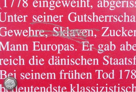 Links to images and earlier protests against the Schimmelmann monument (texts in German).