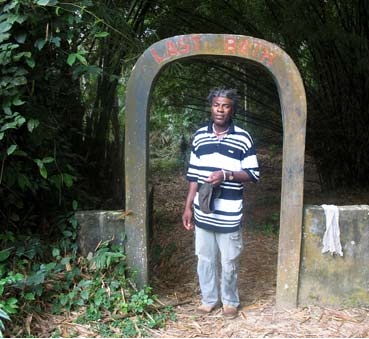 In seiner Heimat Ghana steht der Künstler Joe Sam-Essandoh in einem Bogen mit der Aufschrift 'Last Bath' in der Nähe einer der zahlreichen Sklavenburgen an der afrikanischen 'Goldküste'. Hier mussten die Gefangenen durch, um sich in einem Fluß zu reinigen, bevor sie von den Sklavenschiffen aufgenommen wurden, die sie auf die Plantagen der weißen Europäer in Übersee brachten. Der Wandsbeker Großkaufmann, dänische Schatzmeister und einer der größten Sklavenhändler, Heinrich Carl von Schimmelmann, hat sein immenses Vermögen im transatlantischen Dreieckshandel angehäuft: Export von Kattuntuch und Waffen nach Afrika, dort gegen Sklaven getauscht, die in die Karibik verschifft wurden. Von seinen Plantagen kam dann Zucker und Baumwolle wieder nach Wandsbek und Dänemark. |